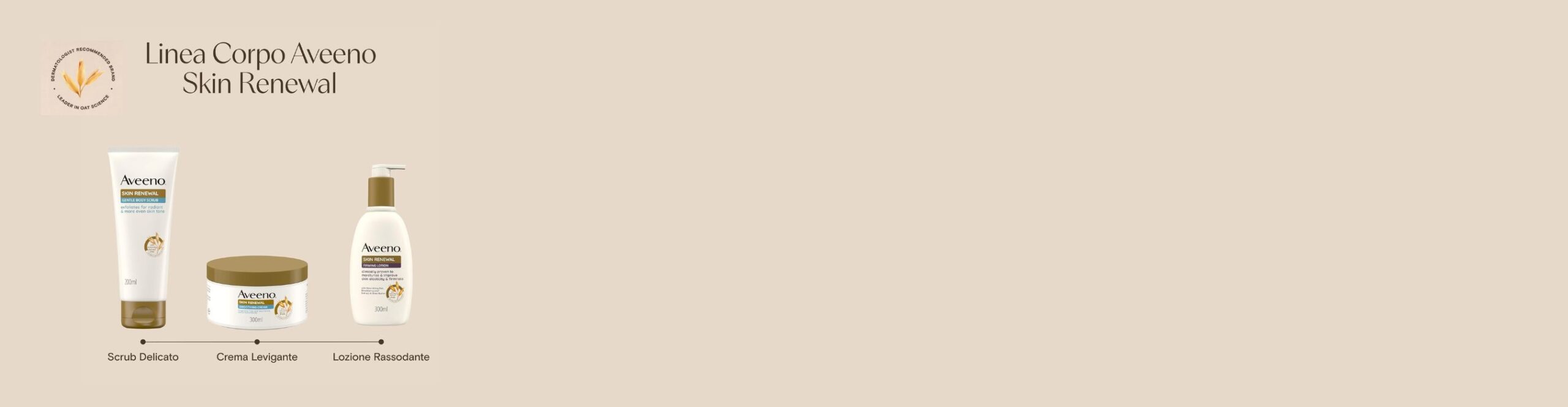 Nuova linea corpo AVEENO Skin Renewal:formulata per levigare ed idratare la pelle ruvida e con grana irregolarecon Niacinamide, PHA di derivazione naturale e AvenaPassa in farmacia e scopri il nuovo rituale di bellezza